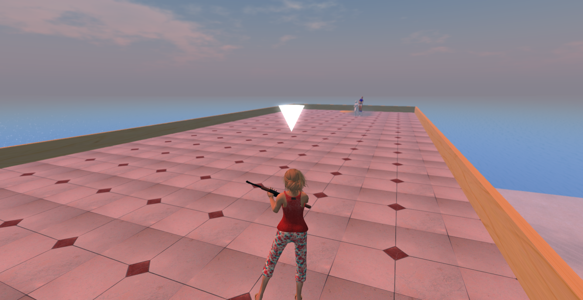 You need a non-scripted avie to play the game, which meant that Havoc's fancy mesh body was a no-no. But he very sportingly slipped into something more comfortable in order to play the game. I gave a very crappy explanation about how it works, and proved it by getting myself offed a few seconds later.